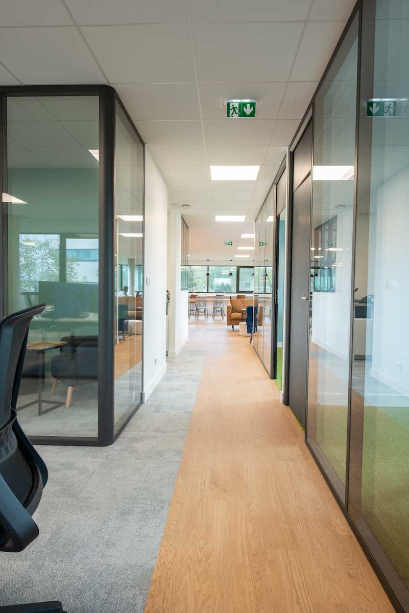 Aménagement intérieur des locaux d'une entreprise - couloir entre les bureaux